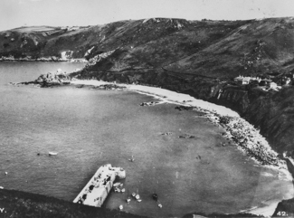 An old postcard looking down at the bay of Bonne Nuit, Jersey.