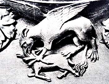 Carving of a griffin.