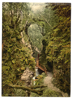An old postcard of Kitt's Pool at Lydford Gorge in Devon.