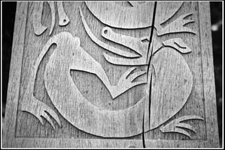 A dragon carved in wood.