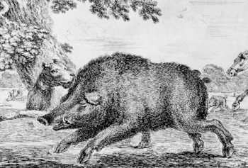 An old woodcut of a boar.