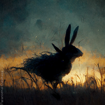 Further Comments: This black dog was described by a witness as being tall and lean, with a long neck and a protruding muzzle. The hound is not regarded here as an ill omen.
