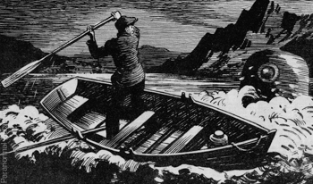 Fictious illustration from Detective Weekly of a creature emerging from a loch.