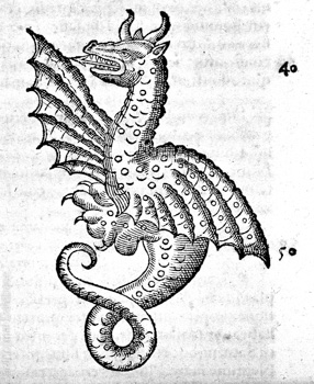 An old woodcut of a winged dragon.