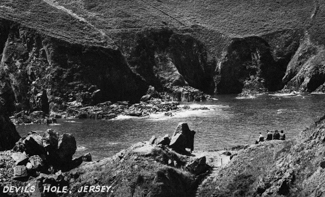 An old postcard showing the Devils Hole on Jersey.