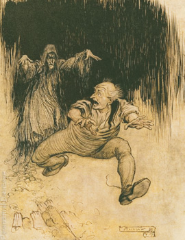 Man escaping a shadowy form, by Arthur Rackham from The New York Public Library.