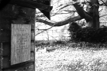 The marker denoting the nearby remains of Maria Marten, Polstead.